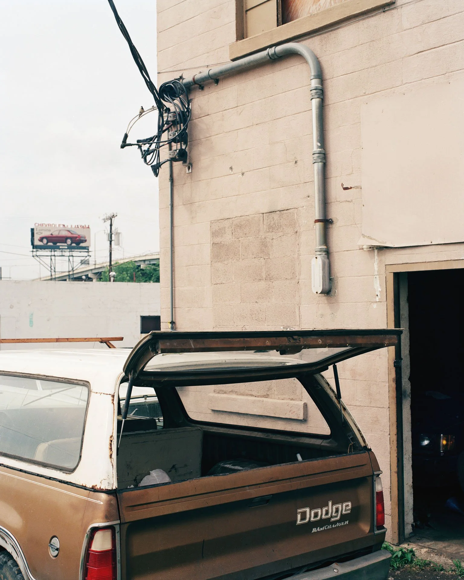 Ron Jude’s Vitreous China is comprised of an archive of photographs made while exploring areas of light industry in (primarily) Midwestern American cities. Rather than comment on the workings of industry itself, Jude depicts the ambient peripheral zones suffusing these environments: big rig parking lots, side exits, and other secondary spaces in which he imagines his grandfather might have daydreamed, or let his mind wander, during his many years as a kiln operator in vitreous china plants, first in the Midwest, and later in Southern California.